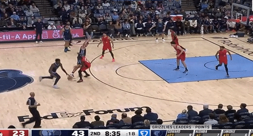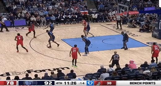 第三节灰熊阿尔达马拿下7分,开拓者格兰特拿下13分,第三节结束灰熊92-78领先开拓者