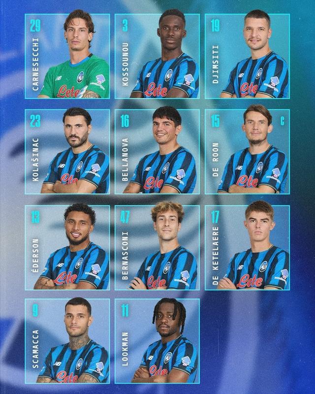 亚特兰大首发:29-卡尔内塞基、3-奥迪隆、23-科拉希纳茨、19-吉姆西蒂、47-贝尔纳斯科尼、17-德凯特拉雷、13-埃德松-席尔瓦、16-贝拉诺瓦、15-德容恩、11-卢克曼、9-斯卡马卡